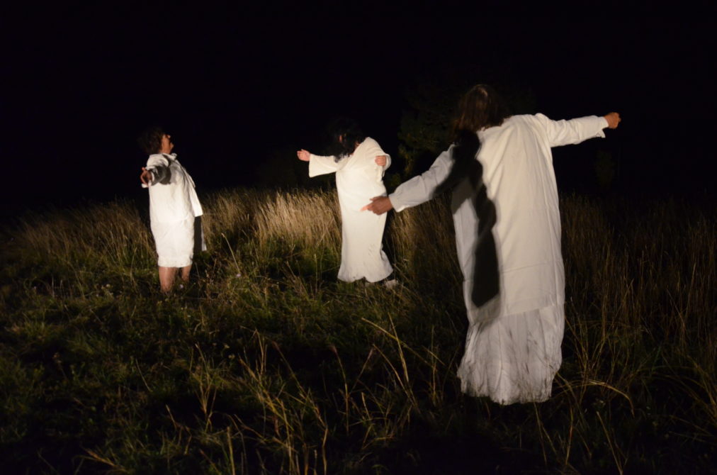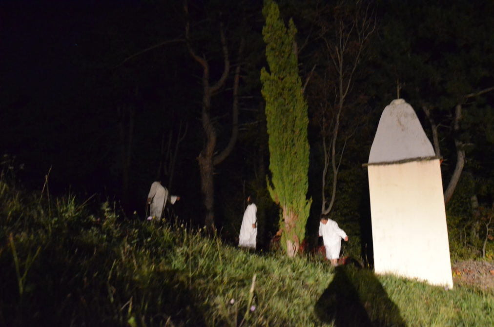 (OPOMBA: Gornje fotografije so bile posnete na dan 31. 10. 2019 na Vardi zabavski in pri kapelici na Fari v Truškah v okviru programa študijskega krožka Beseda slovenske Istre pod mentorstvom Lede Dobrinja. Pri snemanju je poleg avtorice prispevka sodelovala tudi Zvezdana Viler, ki je prenesla pričevanje o videvanju bele žene tudi na Pomjanu. Prvič smo o belih ženah slišali na Večeru ob ognju Pod Vardo zabavsko ob jesenskem enakonočju letos, kjer se je pripovedovanje o belih ženah povezalo s slovenskim bajeslovnim izročilom o dobrih vilah in o krivopetkah. V Istri je poznan tudi izraz bela štriga. Fotografije je posnela Milena Piciga. Opombe pripisala Leda Dobrinja.)