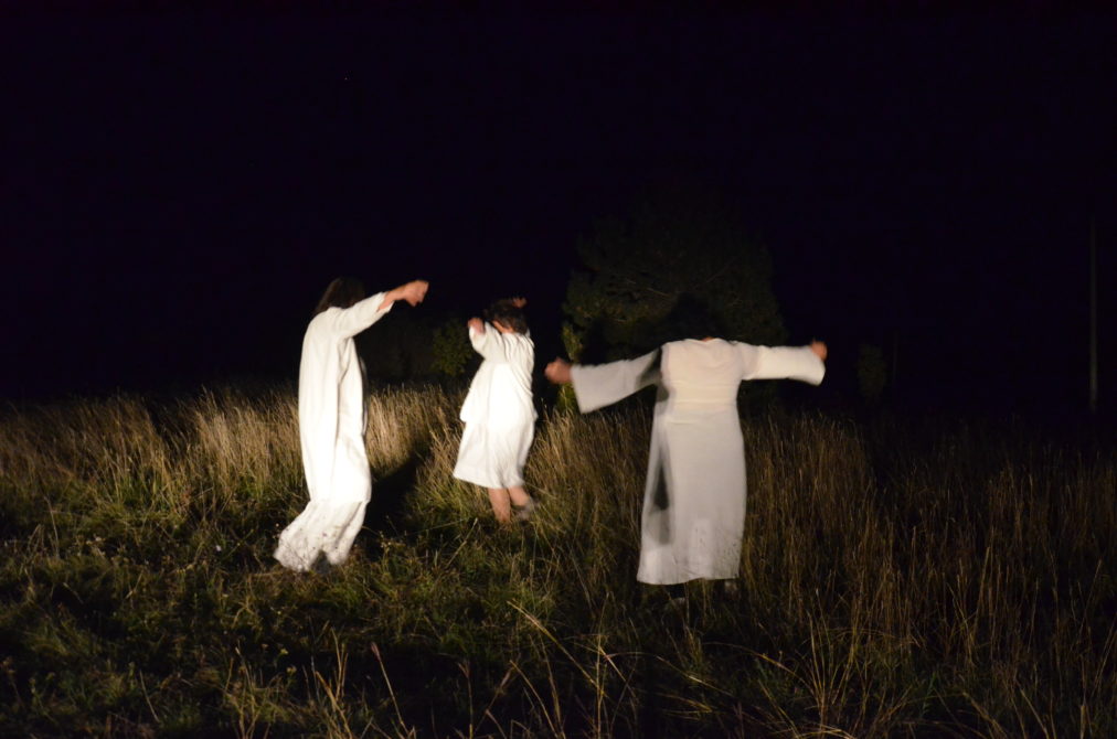 »Tu so mlade ljepe žene. Jemajo dolge, ljepe, ondaste jen speščene črne lasje. Bjelo dolgo šeroko krilo. Pridejo jen plešejo ukule kapele. Plešejo jen plešejo. Jen kadar pasa njihova ura, po polnoči, grejo. Se zgebijo. Jeh nej več. Jen pridejo nazad druge dan. Ma buh ne dej, da jeh pr plese moteš. Ku prideš blizk njeh, te primejo jen te vrtijo, da plešeš z njime. Ne moreš vjdet. Te držijo, cendrajo, jen gor, jen dol. Taku te zmantrajo, da nanka ne znaš da čej se. Ma pole pej taku lepu spiš.
