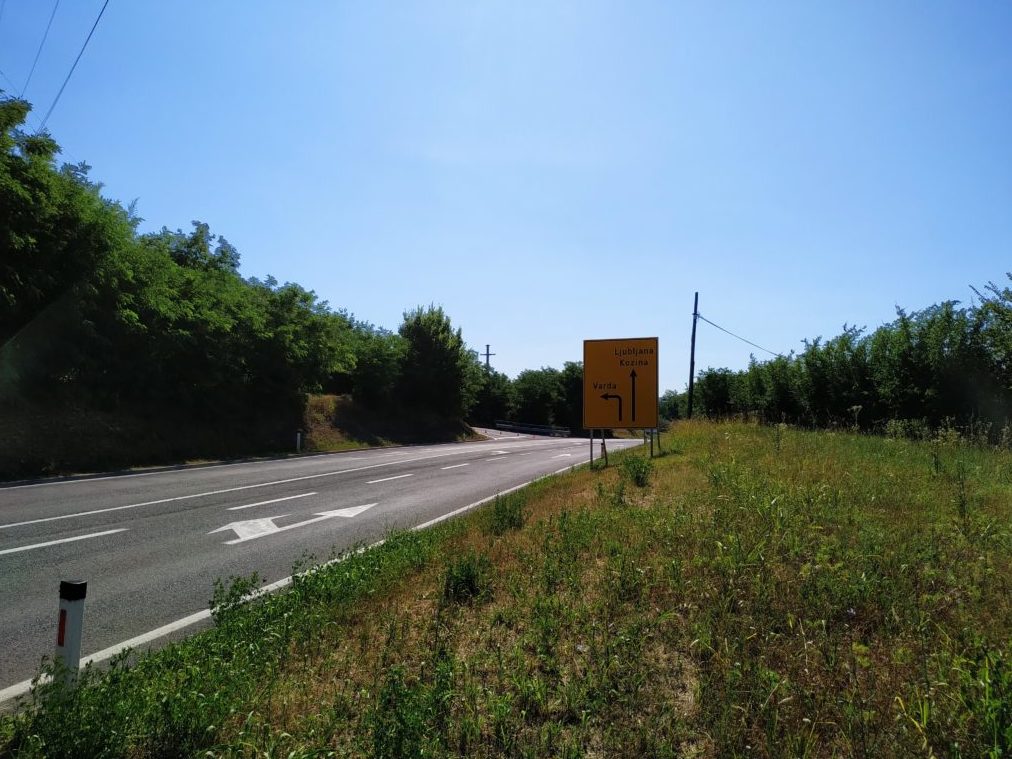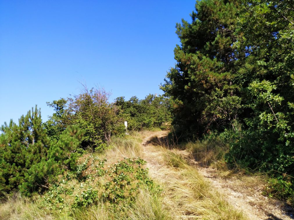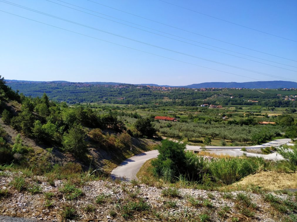 »Šla bom za cesto,« sem si dejala »in bom mesto opazovanja že prepoznala.« In tako se po nekaj ovinkih dvignem nad rižansko dolino, ki se je razkošno razprostirala pod menoj, njen vzhodni del je bil še zakrit, zahodni pa se je razprl in se mimo Sermina znižal do morske gladine. Zato se namenim slediti asfaltirani cesti, ki se je vse bolj strmo dvigala proti severu in hkrati proti zahodnemu delu tinjanskega hriba. A kmalu cesto prekriža avtocesta in ji v podnožju nasipa pusti le ozek prehod, toliko, da avto še zapelje skozi. Nato drugi strani sledi neporaščena kotlina, pot naredi velik ovinek in se nato nenadoma konča. Pravzaprav se na drugi strani avtoceste, sredi pobočja, konča le asfaltirana pot, stara pot, kolovoz, se nadaljuje proti Škofijam, ki jih slutim na drugi strani hriba.