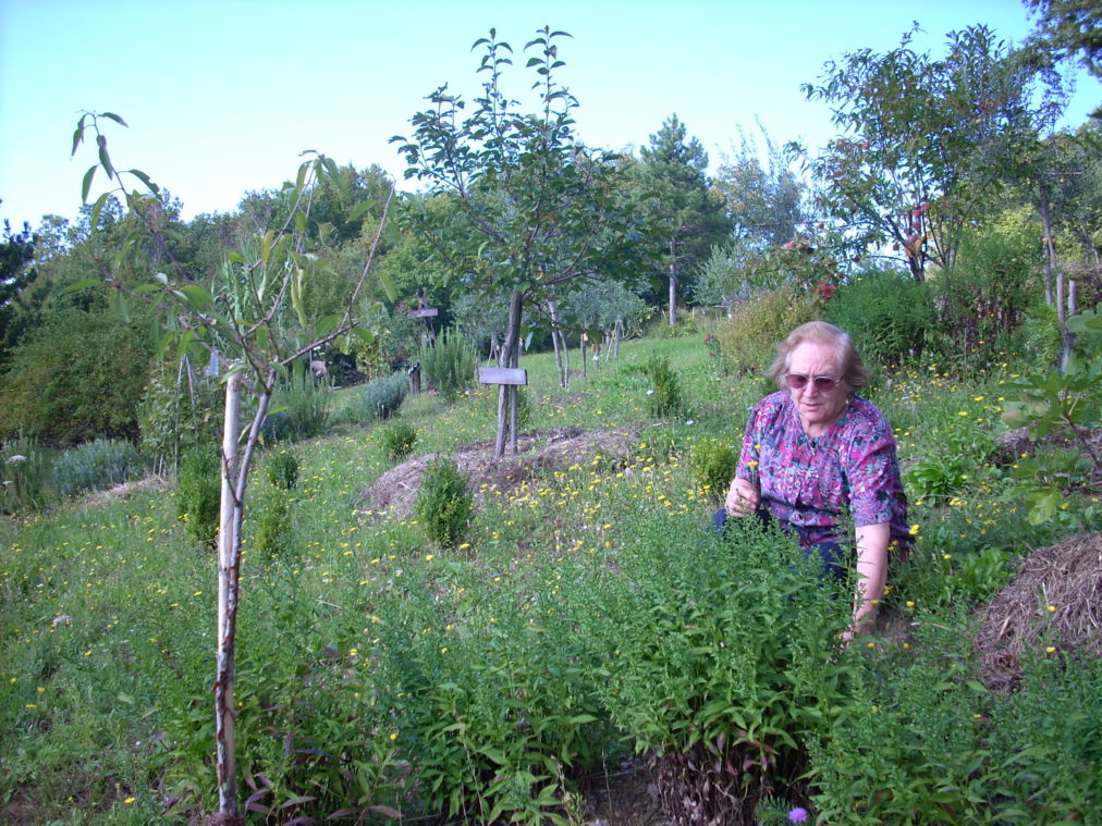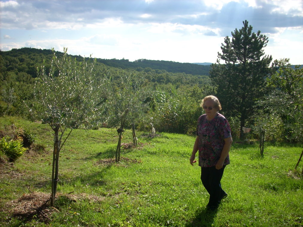 Nekoč polna petja, so sedaj pobočja in hribi tiho. Ptičje petje spomladi, poleti pa traktorji in brazde šumov za avtomobili, tvorijo novo glasbeno simfonijo. Včasih, zares poredko, pa se začuje mila pesem. Nekega dne, že nekaj časa je tega, odkar sem Pod Vardo zabavsko povabila svojo mater. Kar nekaj prošnje je bilo potrebno, da se je preselila v čas svoje mladosti in zapela. Pričakovali sva njeni vnukinji, njima je bilo vse namenjeno. Pa se je pesem milo usedla med travo, grmovje in bližnji gozd in zemlja je vsrkala spomin na Šteljino daritev. Na sliki moja mati Štelja pri petju starih pesmi okoli leta 2010. Foto: L. D.)