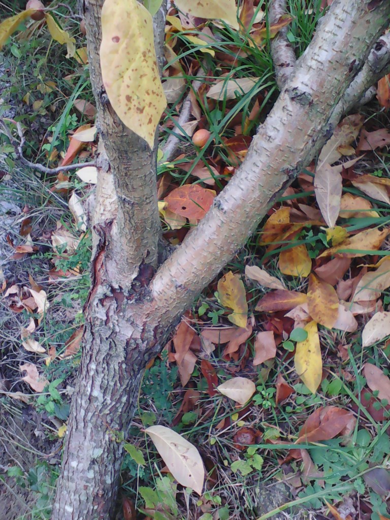 Na slikah spodaj deblo, kjer se vidi mesto cepljenja. Nešpolo je pred kakimi slabimi desetimi leti cepil Guštin s Črnega kala na podlago belega trna. Beli trn pa je, kot pravijo, belinovo drevo. Zanimivo, tudi plodovi belega trna so po obliki podobni nešpolam in brekolam, le da so rdeče barve in so popolnoma drugačnega okusa in imajo druge lastnosti.