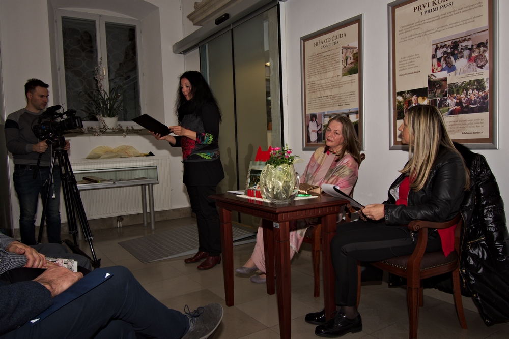 Nadaljevanje predstavitve: “…Osrčje dogajanja je bila Hiša o Ćiuda in Center Vita, to je avtoričin zasebni zavod za pospeševanje kreativnosti in naravno življenje. Hišo je avtorici uspelo odkupiti z veliko spretnostjo in zalaganjem ter jo predelati v svoj dom in hkrati v kulturni hram istrskega podeželja. V njej se je polno desetletje zbirala domača kulturna srenja, vključno z Istrani, ki smo živeli v mestih, in tistimi priseljenci, ki jim je Istra postala nov dom in jih je dogajanje pritegnilo. Ob materialnih in delovnih naporih okrog priprave in vodenja številnih projektov je Dobrinja našla še dovolj moči tudi za številne kulturne prireditve na svojem domu in za srečanja z istrskimi ljudmi, ki so puščali za seboj kakršnokoli ustvarjalno sled. Neobremenjeno in tovariško so se namreč v hiši od Ćiuda zbirali ljudje vseh mogočih stanov, nazorov in interesov, od kmeta do doktorja znanosti, od duhovnika do nekdanjega partijskega sekretarja itn. Lahko bi rekli, da je to hišo obdajal poseben blagoslov, pred katerim se moramo spoštljivo pokloniti. Naj za ilustracijo naštejem le nekaj najodmevnejših dejavnosti centra Vita v Hiši od Ćiuda. V njej so se odvijale likovne kolonije in slikarske razstave, gostovanja raznih skupin, vsedržavni mladinski raziskovalni tabor, pa večeri ljudske ustvarjalnosti in čitalniški krožki. V tej hiši so bili pripravljeni večletni radijski nizi Ob Rižani in Rokavi, Skrito cvetje rožmarina in Po poteh glagoljaštva, ki jih je predvajal Radio Trst A. Študijski krožek Beseda Slovenske Istre je tu začel izdajati zbornik Brazde s Trmuna, Krožek Slovenci v Istri pa je urejal in izdajal list Istrske teme. Izdelana sta bila osnutek razvojnega programa krajevne skupnosti Marezige in študija o razvoju Loparja, izvedena je bila priprava za vključitev Loparja v program celostnega razvoja podeželja in obnove vasi, izdelan je bil prvi kulturni in turistični vodnik za krajevno skupnost Marezige in okolico. V Hiši od Ćiuda je nastajala krajevna domoznanska zbirka, ki je kasneje našla domovanje v Hiši od Brdinca, in tu se je rodil tudi projekt Istrskega parka. Dobrinja je menila, »da se človek zave samega sebe prek kulture ter prek nje spoznava dediščino svojih prednikov« in se edino tako lahko trdno zasidra v času in prostoru, da lahko kljubuje viharjem, ki vršijo preko njega. Lokalni, ideološko enoumni, pisni in elektronski mediji so to samoniklo ustvarjanje Centra Vita podcenjevali in ga potiskali na obrobje. So mu pa tržaški slovenski mediji na široko odprli svoja vrata, predvsem Katoliški glas, ki ga je urejal naš istrski rojak Dušan Jakomin, pa revija Mladika v režiji Društva slovenskih izobražencev iz Trsta in predvsem Radio Trst A, ki je dolga leta oddajal navedene radijske nize. Pri čemer je Dobrinja tvegala oceno, da bi ustvarjalni zanos brez te medijske podpore iz Trsta verjetno opešal, in se nam je tako Trst, kot pri prvih dveh predhodnih istrskih prebujah, predstavil kot kulturno središče Slovenske Istre.