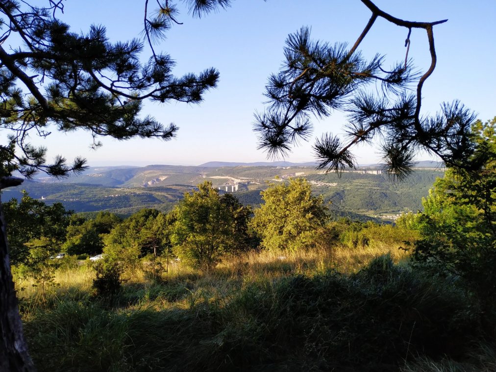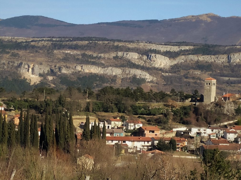 Pogled na Kraški rob v smeri Podpeči in Črnega kala z gradu v Kubedu. Več v prispevkih zbornika Slovensko staroselstvo in Istri III.