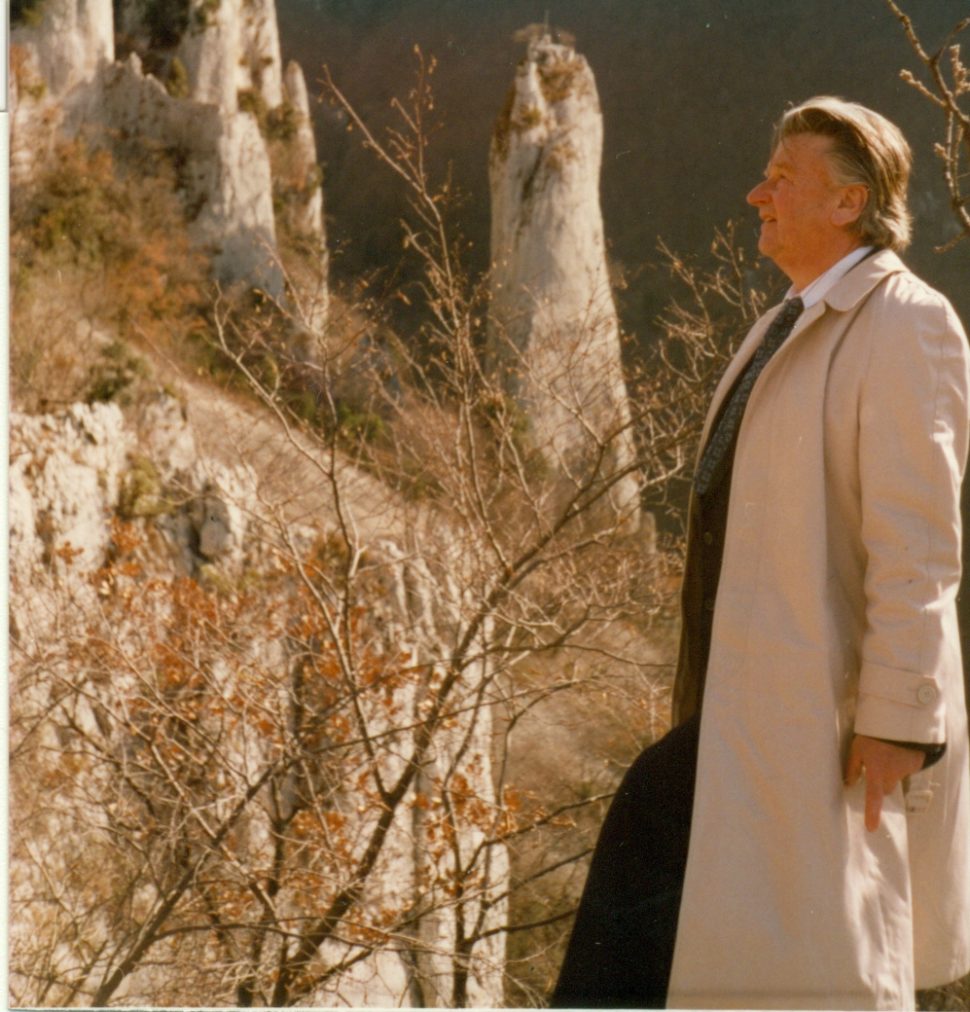Jože Pohlen ob pogledu na impresivne naravne stebre pod Učko. Foto: M. Tomšič, 1993.